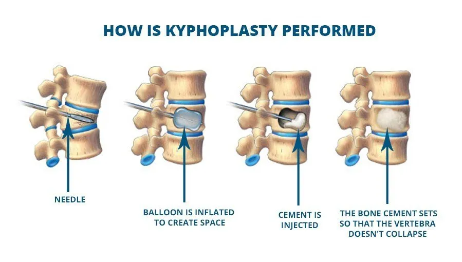 Kyphoplasty surgery to treat a fracture from osteoporosis is performed at a hospital under local or general anesthesia. Other logistics for a typical kyphoplasty procedure are: